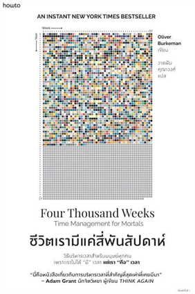 เราสำรวจปรัชญาน่าทึ่งเกี่ยวกับเวลาและการบริหารเวลา ที่จะช่วยให้คุณมองเวลาชีวิตที่มีอยู่แค่ราวๆ 4000 พันสัปดาห์เปลี่ยนไปโดยสิ้นเชิง และปลดแอกตัวเองจาก “คำสาปของยุคโมเดิร์น” ที่เรียกร้องให้เรายัดทุกอย่างลงในเวลาที่มีอย่างมีประสิทธิภาพ ทำทุกอย่างให้เสร็จอย่างดี (getting thing done) หนังสือทำให้เห็นว่า เราถูกตั้งโปรแกรมให้มีความคิดผิดเพี้ยนแค่ไหนเกี่ยวกับเวลา ความจริงด้านเวลาที่จะไม่มีวันเปลี่ยนแปลงคืออะไร พร้อมกับให้เครื่องมือที่ช่วยให้คุณได้สร้างชีวิตที่มีความหมาย ด้วยการยินดีโอบรับขีดจำกัดของชีวิต และเปลี่ยนแปลงสิ่งที่เราทำได้ในฐานะปัจเจก และสังคม